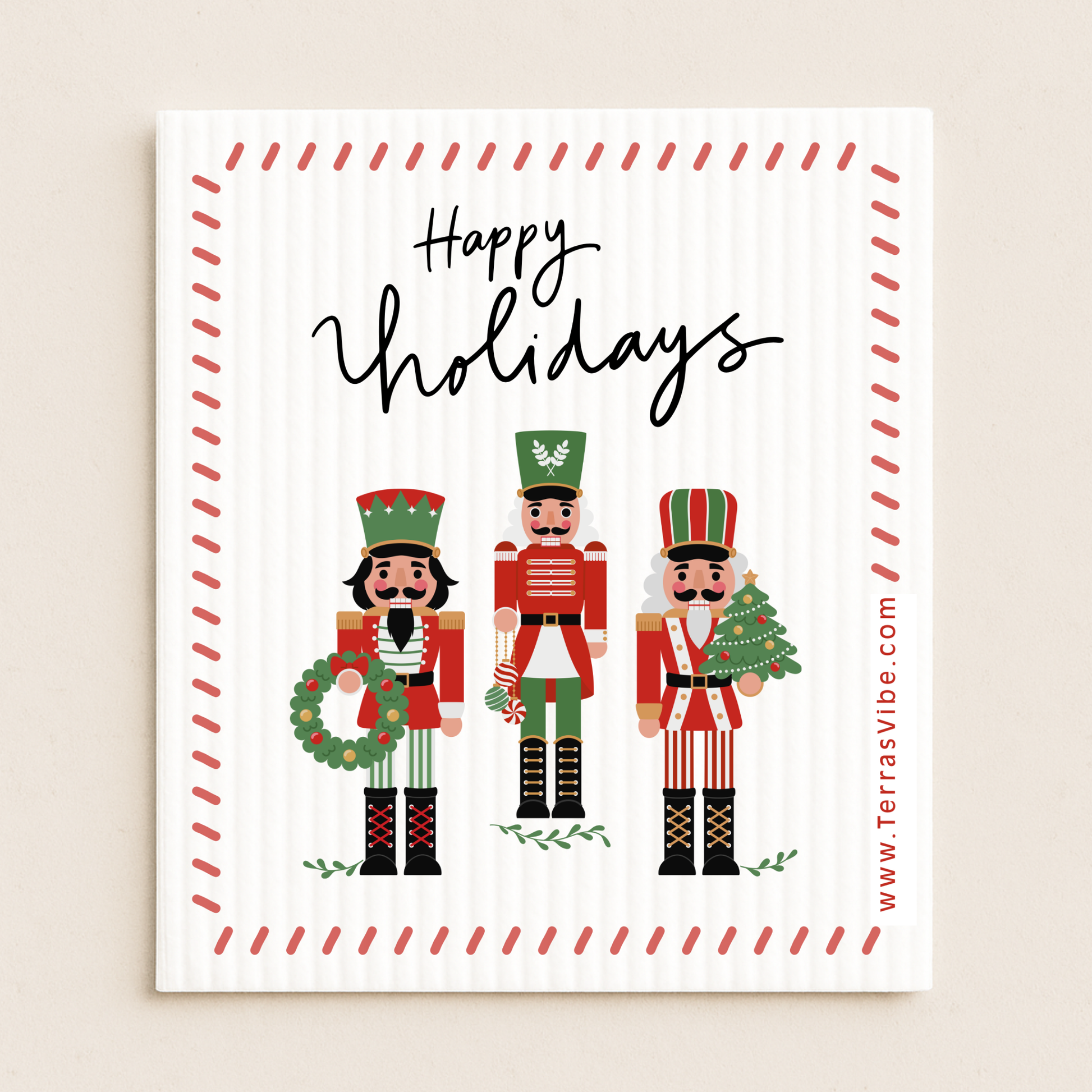 Celebrate the season with our HAPPY HOLIDAYS NUTCRACKER Swedish cloth! This cheerful, eco-friendly cloth will add a festive touch to your kitchen while tackling spills and messes with ease. Its fun design and durable material will make your holiday cleaning a breeze!