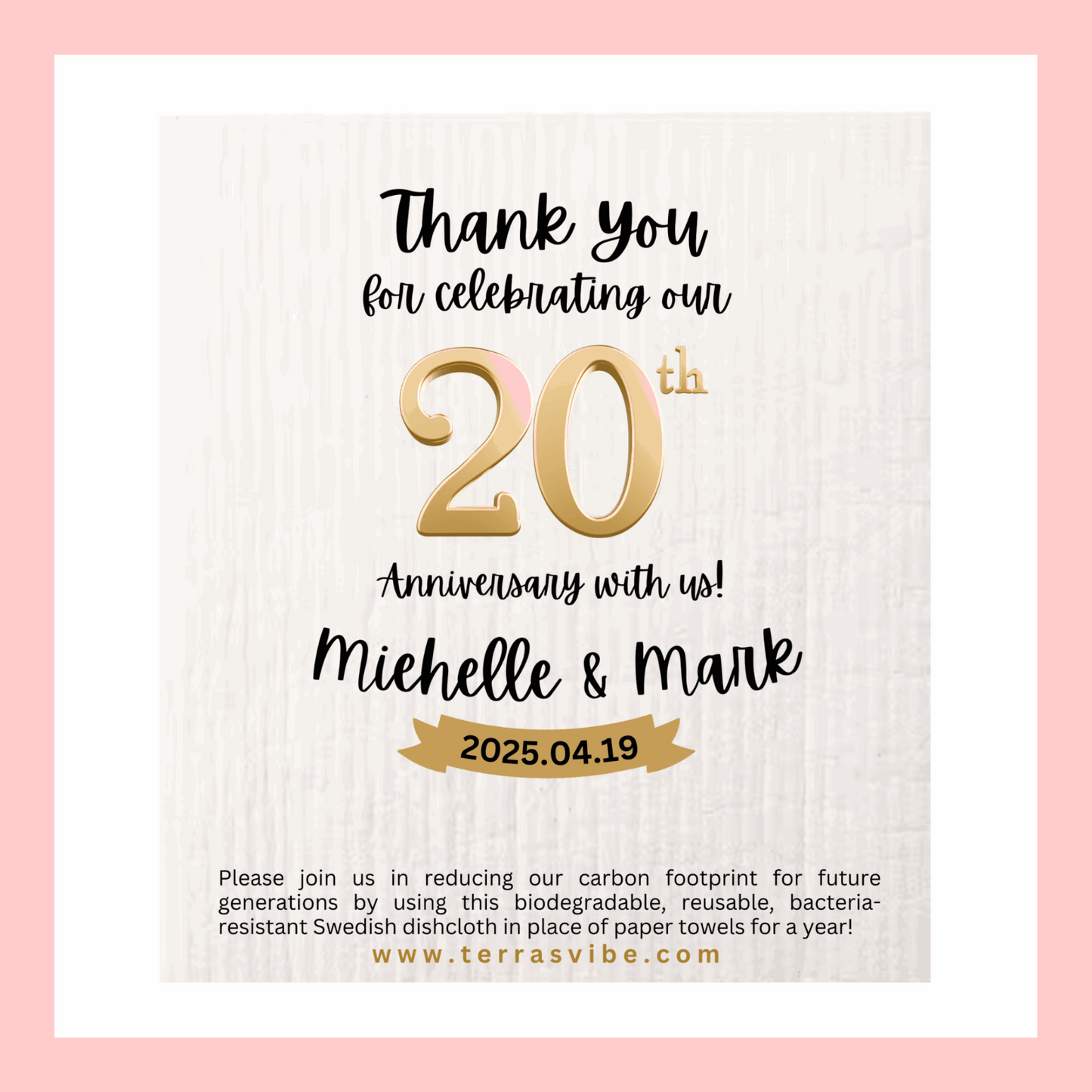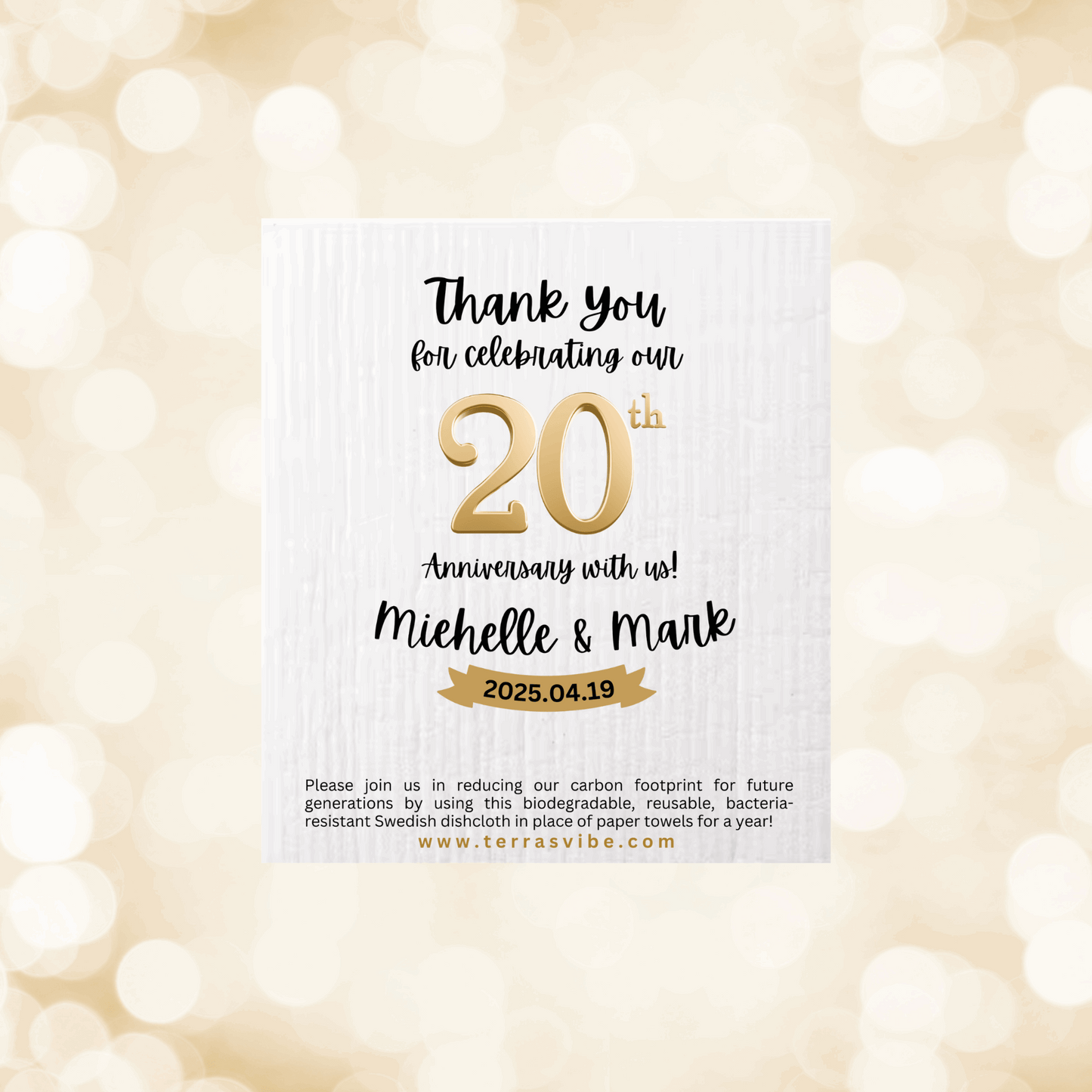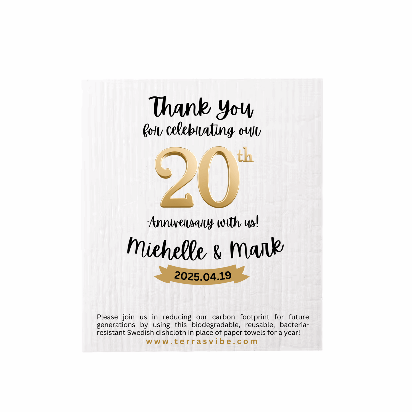 Celebrate your milestone with a heartfelt, personalized, and eco-friendly anniversary party favor. These Swedish dishcloths offer a meaningful way to thank your guests while promoting sustainable living.