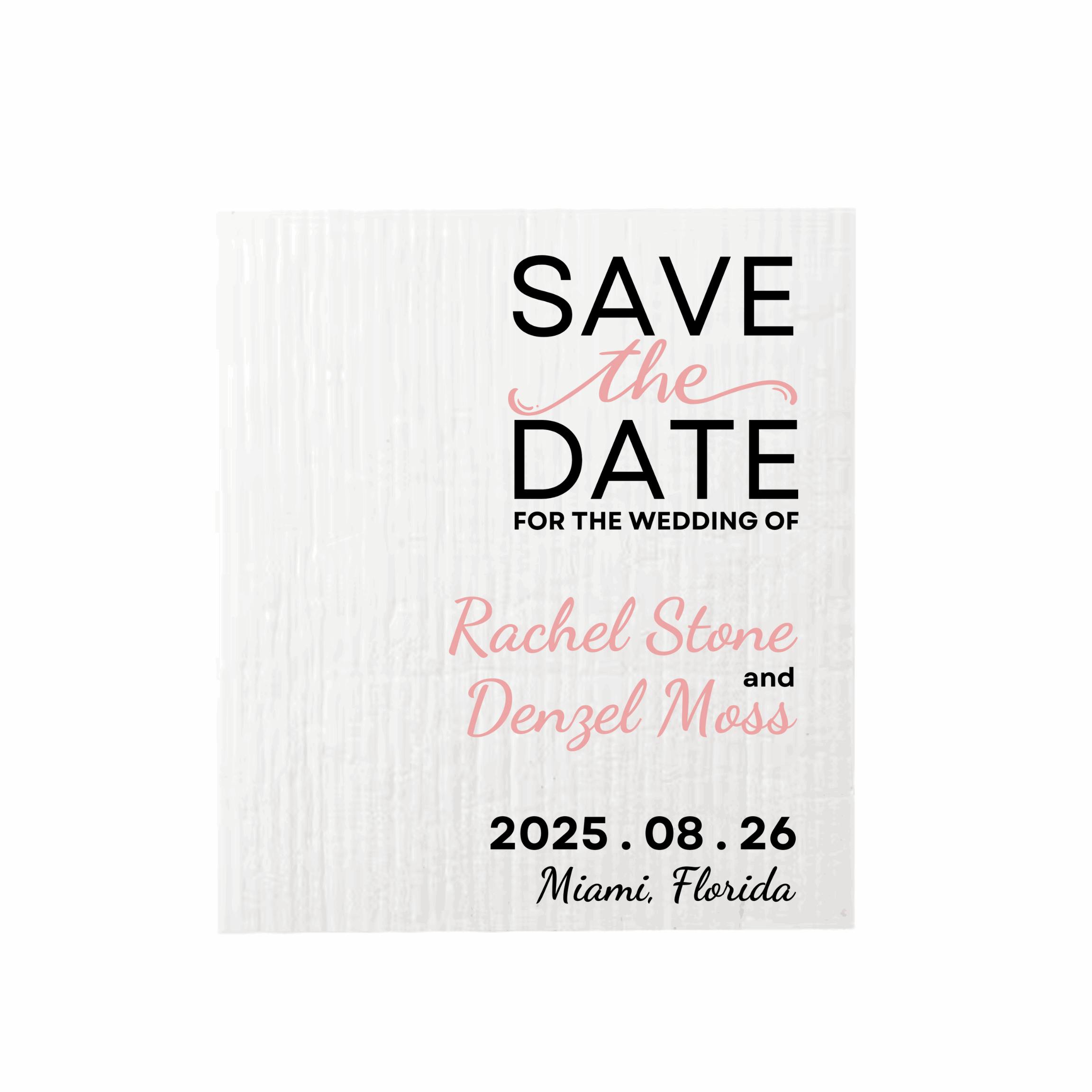 SAVE-THE-DATE ANNOUNCEMENT ~ Swedish Dishcloth [Right Justified style C -pink, black, gold or peach]
